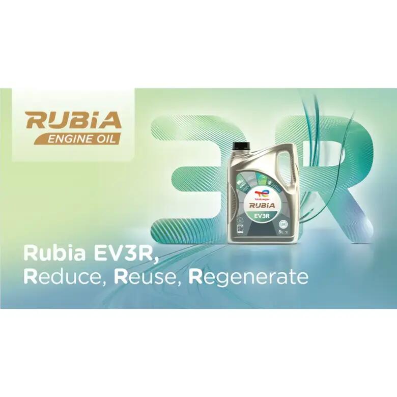 Щоб допомогти своїм клієнтам у їхніх зусиллях з декарбонізації, компанія TotalEnergies Lubrifiants розробила продукти Rubia EV3R з урахуванням принципів циркулярності: RRBO (re-refined high end base oils - повторно рафіновані високоякісні базові оливи) становлять понад 50% базових олив цих продуктів. Клієнти в секторі мастильних матеріалів також стикаються з операційною проблемою управління своїми пластиковими відходами. Сьогодні зменшення впливу на навколишнє середовище життєвого циклу продукту означає використання перероблених пластмас. Саме тому ці нові екологічно дружні мастильні матеріали будуть упаковані в 5-літрові каністри, виготовлені з 50% переробленого поліетилену високої щільності (HDPE), які можна впізнати за їх сріблястим кольором.